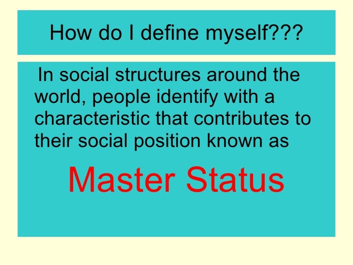The Term Master Status Is Defined As A Status That Has Exceptional Importance For Social Identity, Often Shaping A Person's Entire Life.