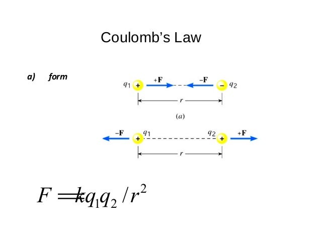 Charge of object 2 r. Coulomb s law fe k q1 q2 r 2 radius squared charge 1 charge 1 electron proton electric force. Use the formula f = kqq/r2 to determine the force when the distance (r) between charge q1 and q2 increased from 3m to 4.5m.