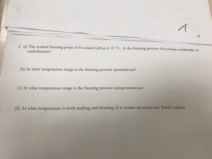 Is The Freezing Of N Octane An Endothermic Or Exothermic Process. (c) in what temperature range is it a nonspontaneous process? (c) in what temperature range is it a nonspontaneous process?