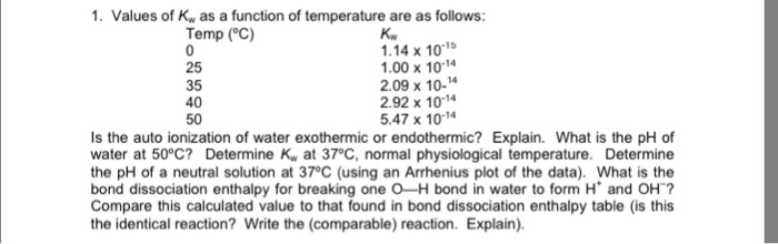 Which of the following statements best explains these observations? Hey unknown, the answer key says that the autoionization of water has a positive dh, because it is endothermic. Exothermic endothermic it depends on pressure it depends on temperature b what is the ph of pure water at 50°c?